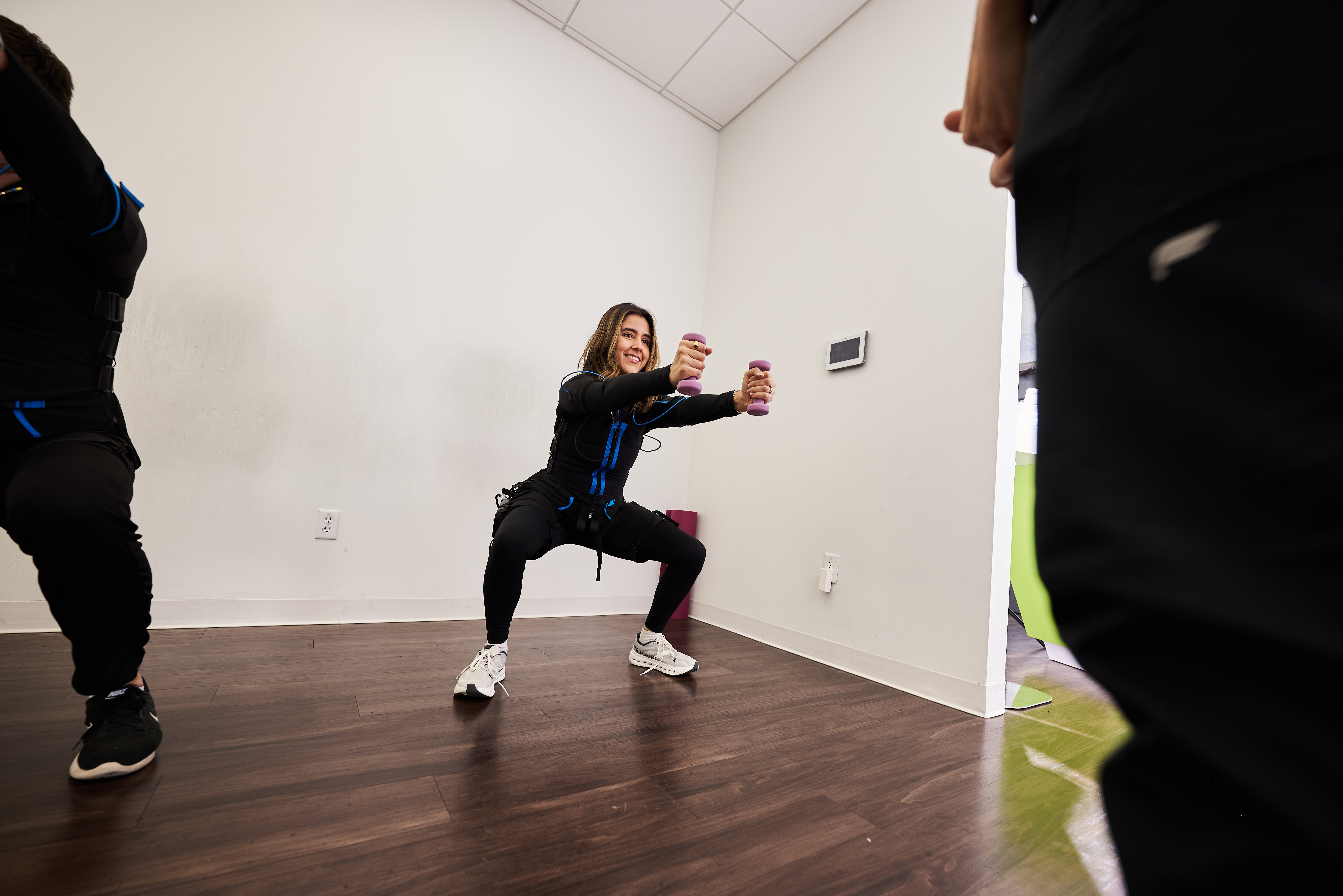 Low-impact EMS with guided movement.Deeper full-body results in 15 minutes.